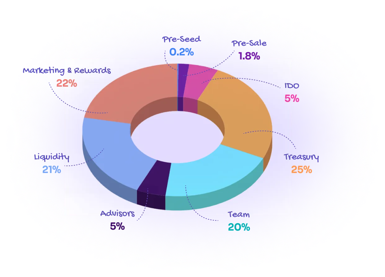- Marketing & Business Development (22%) will fund ecosystem growth, partnerships, and promotional activities.